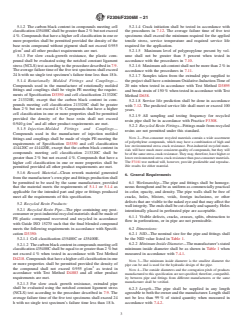 - Product Scope: Covers requirements for pipe and fittings using virgin or recycled PE materials with specified cell classifications and carbon black content. Size range includes nominal inside diameters from 300 mm to 1500 mm (12 in. to 60 in.).