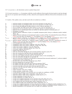 1.3 This test method describes how to determine the thermal transmittance, US of a fenestration product (also called test specimen) at well-defined environmental conditions. The thermal transmittance is also a reported test result from Test Method C1363. If only the thermal transmittance is reported using this test method, the test report must also include a detailed description of the environmental conditions in the thermal chamber during the test as outlined in 10.1.14.