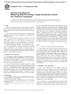 (Test Method)Standard Test Method for Measuring Heat Flux Using a Copper-Constantan Circular Foil, Heat-Flux Transducer