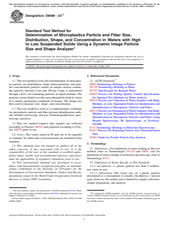 ASTM D8489-23e1 - Standard Test Method for Determination of Microplastics Particle and Fiber Size, Distribution, Shape, and Concentration in Waters with High to Low Suspended Solids Using a Dynamic Image Particle Size and Shape Analyzer