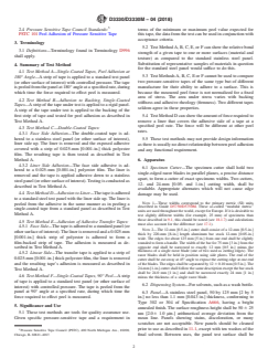 ASTM D3330/D3330M-04(2018) is a standard published by ASTM International. Its full title is "Standard Test Method for Peel Adhesion of Pressure-Sensitive Tape". This standard covers: SIGNIFICANCE AND USE 5.1 These test methods are tools for quality assurance use. Given specific pressure-sensitive tape and a requirement in terms of the minimum or maximum peel value expected for this tape, the data from the test can be used in conjunction with acceptance criteria. 5.2 Test Method A, B, C, E, or F can show the relative bond strength of a given tape to one or more surfaces (material and texture) as compared to the standard stainless steel panel. Substitution of representative samples of materials in question for the standard steel panel would suffice to do this. 5.3 Test Methods A, B, C, E or F cannot be used to compare two pressure-sensitive tapes of the same type but of different manufacture for their ability to adhere to a surface. This is because the measured peel force is not normalized for a fixed area of stress. The area under stress varies with backing stiffness and adhesive rheology (firmness). Two different tapes seldom agree in these properties. 5.4 Test Method D can show the amount of force required to remove a liner that covers the adhesive side of a tape at a specified peel rate. The force will be different at other peel rates. 5.5 These test methods may not provide design information as there is usually no direct relationship between peel adhesion and any functional requirement. SCOPE 1.1 These test methods cover the measurement of the peel adhesion of pressure-sensitive tapes. 1.1.1 Test Method A gives a measure of the adherence, when peeled at 180° angle, to a standard steel panel or to other surface of interest for a single-coated tape. 1.1.2 Test Method B gives a measure of the adherence to the backing of a single-coated tape. 1.1.3 Test Method C gives a measure of the adherence of double-coated tape to a standard steel panel or other surface of interest. 1.1.4 Test Method D gives a measure of the adherence of the release liner to the adhesive of either single- or double-coated tape. 1.1.5 Test Method E gives a measure of the adherence of an adhesive transfer tape to a standard steel panel or other surface of interest. 1.1.6 Test Method F gives a measure of the adherence, when peeled at 90° angle, to a standard steel panel or other surface of interest for a single-coated tape. 1.2 These test methods provide a means of assessing the uniformity of the adhesion of a given type of pressure-sensitive adhesive tape. The assessment may be within a roll of tape, between rolls, or between production lots. 1.3 Variations in either the tape backing or the adhesive, or both, affect the response. Therefore, these test methods cannot be used to pinpoint the specific cause(s) of non-uniformity. 1.4 These test methods may not be appropriate to test tapes having relatively stiff backings, stiff liners, or backings showing high stretch at low forces. These characteristics will result in a high variability for the test response which is not a true indication of the real nature of the adhesive bond. 1.5 Values stated in either SI or inch-pound units are to be regarded separately as standard. The values stated in each system may not be exact equivalents, therefore, each system must be used independently without combining values in any way. 1.6 This standard does not purport to address all of the safety concerns, if any, associated with its use. It is the responsibility of the user of this standard to establish appropriate safety, health, and environmental practices and determine the applicability of regulatory limitations prior to use. 1.7 This international standard was developed in accordance with internationally recognized principles on standardization established in the Decision on Principles for the Development of International Standards, Guides and Recommendations issued by the World Trade Organization Technical Barriers to Trade (TBT) Committee.