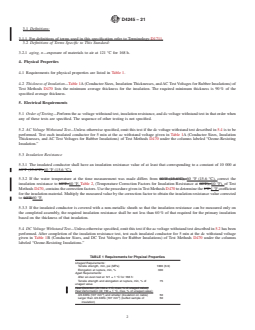 Keywords: ASTM D4245-21, ozone-resistant insulation, thermoplastic elastomer insulation, wire and cable standards, 90 °C dry, 75 °C wet, electrical insulation, ac voltage withstand, dc voltage withstand, insulation resistance, accelerated water absorption testing, ASTM cable specifications.