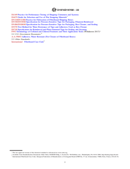 ASTM D1974/D1974M-22 is a standard published by ASTM International. Its full title is "Standard Practice for Methods of Closing, Sealing, and Reinforcing Fiberboard Boxes". This standard covers: SIGNIFICANCE AND USE 4.1 The means of closing the flaps of corrugated shipping containers is one of the important decisions for a shipper. It may affect the overall material cost, the labor costs, the packaging equipment costs, and the performance of the box during distribution. 4.2 This practice provides a list of many available procedures for closing, sealing, and reinforcing boxes. Most of these describe a particular packaging material and a particular use of it on a box. Some methods involve package performance testing; any closure or reinforcement which passes prescribed tests (usually on the proposed box and contents) is considered to comply with that section of this practice. Performance-based methods are encouraged because they allow for considerable flexibility in the choice of packaging materials and methods yet provide assurance of a given level of performance. 4.3 A diverse range of methods are described in this practice but relative performance levels are not given. Laboratory package testing such as Practice D4169 and field experience are recommended to rate alternative methods on performance for the intended use. 4.4 The descriptions of materials and methods in this practice provide direction for the procurement of materials and for their common uses on boxes. These descriptions may be sufficient for some specification purposes, but others will require more thorough material and application requirements than those given here. 4.5 The list of methods in this practice is not exhaustive; deviation or variation from the listed methods is possible with the approval of the appropriate parties referencing this practice. Depending on the characteristics of the contents, the specific shipping container, the acceptable package costs, the distribution hazards, and the desired degree of assurance of successful shipment, more stringent methods than those listed may be needed or less stringent methods than those listed may be adequate. The methods described are typical uses... SCOPE 1.1 This practice describes several methods for closing, sealing, and reinforcing fiberboard (solid and corrugated, excluding triple wall) shipping boxes used for shipment. One or several methods listed in this practice may be referenced in regulations, specifications, or contracts. (See Appendix for cross reference). 1.2 The values stated in either SI units or inch-pound units are to be regarded separately as standard. The values stated in each system may not be exact equivalents; therefore, each system shall be used independently of the other. Combining values from the two systems may result in non-conformance with the standard. Note 1: This practice is intended to be workable in both inch-pound units and SI units. Unit conversions are intended to be functional but are not necessarily exact; this should not significantly affect the performance of the closing, sealing, or reinforcing methods. Descriptions in inch-pound and SI units are considered interchangeable in this practice. Note 2: All references to this standard should be made by closure number. 1.3 This standard does not purport to address all of the safety concerns, if any, associated with its use. It is the responsibility of the user of this standard to establish appropriate safety, health, and environmental practices and determine the applicability of regulatory limitations prior to use. 1.4 This international standard was developed in accordance with internationally recognized principles on standardization established in the Decision on Principles for the Development of International Standards, Guides and Recommendations issued by the World Trade Organization Technical Barriers to Trade (TBT) Committee.