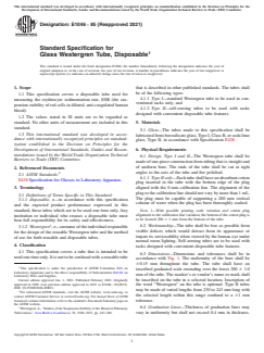 Keywords: ASTM E1046-85(2021), disposable glass Westergren tube, erythrocyte sedimentation rate, ESR tube specification, clinical laboratory standards, borosilicate glass tube, soda lime glass tube, laboratory supplies, laboratory glassware, standard ESR tube, medical diagnostics, single-use laboratory tubes, ASTM standards.