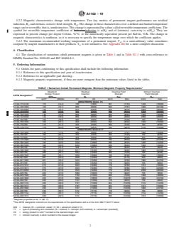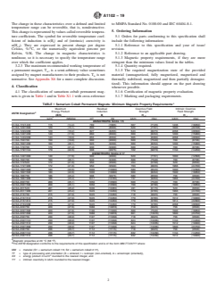 4.1 The classification of samarium cobalt permanent magnets is given in Table 1 and in Table X1.1 with cross-reference to