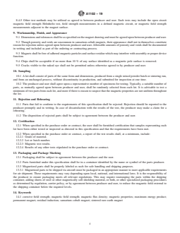 - Quality and Testing Requirements: The specification mandates procedures for magnetic property measurement, sampling protocols, and lot certification. Magnets must meet minimum property and appearance requirements as specified in the order.
