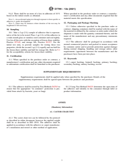 - Packaging and Marking: Specifies requirements for the packaging, labeling, and documentation of adhesives for commercial distribution.