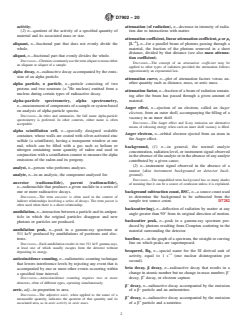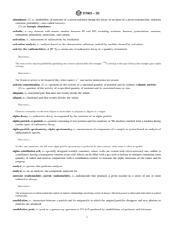 - Definitions of Key Radiochemistry Terms: The standard covers a wide range of important terms such as activity, half-life, decay constant, detector types, and measurement units (including SI and non-SI units like becquerel and curie).