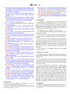 1.4 This practice describes the design, construction, performance evaluation and use of emission cells for VOC emission testing. Sampling, transport and storage of materials to be tested, and preparation of test specimens are also described.