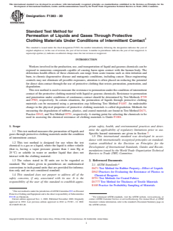 ASTM F1383-20 - Standard Test Method for Permeation of Liquids and Gases Through Protective Clothing Materials Under Conditions of Intermittent Contact