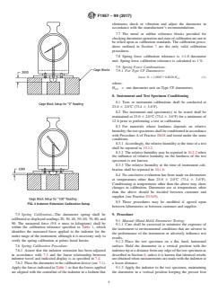 ASTM F1957-99(2017) is a standard published by ASTM International. Its full title is "Standard Test Method for Composite Foam Hardness-Durometer Hardness". This standard covers: SIGNIFICANCE AND USE 4.1 This test method is based on the penetration by a specific type of indentor when forced into the material under specified conditions. The indentation hardness is related inversely to the penetration and is dependent on the elastic modulus and viscoelastic behavior of the material. The geometry of the indentor and the applied force influence the measurements, such that no simple relationship exists between the measurements obtained with one type of durometer and those obtained with another type of durometer or other instruments used for measuring hardness. This test method is an empirical test intended primarily for control purposes. No simple relationship exists between indentation hardness determined by this test method and any fundamental property of the material tested. For specification purposes it is recommended that Test Method D785 be used for hard materials and Test Method D2240 be used for solid elatomers. SCOPE 1.1 This test method describes a type of composite foam hardness measurement device known as durometer: Type CF. The procedure for determining indentation hardness of substances comprised of two or more elastomeric materials, one of which is a foam or foam like material. These are classified as composite foam structures. The composite foam product may have an armature made of a material suitable for adding structural integrity including but not limited to metal, plastic, or wood. This construction is typical for lapbar restraints, seating, and other restraint devices, as well as some show elements. 1.2 This test method is not equivalent to other indentation hardness methods and instrument types, specifically those described in Test Methods D1415 and D2240. 1.3 The values stated in SI units are to be regarded as standard. The values given in parentheses are for information only. Many of the stated dimensions in SI are direct conversions from the U.S. customary system to accommodate the instrumentation, practices, and procedures that existed prior to the Metric Conversion Act of 1975. 1.4 All materials, instruments, or equipment used for the determination of mass or dimension shall have traceability to the National Institute for Standards and Technology (NIST) or other internationally recognized organizations. 1.5 This test method is not a safety standard as it pertains to ride legislation. The use of this test method is optional based upon an agreement between customers and suppliers of foam products. 1.6 This standard does not purport to address all of the safety concerns, if any, associated with its use. It is the responsibility of the user of this standard to establish appropriate safety and health practices and determine the applicability of regulatory limitations prior to use.