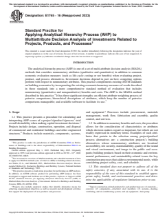 ASTM E1765-16(2023) - Standard Practice for Applying Analytical Hierarchy Process (AHP) to Multiattribute Decision Analysis of Investments Related to Projects, Products, and Processes