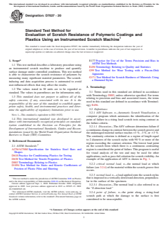 ASTM D7027-20 - Standard Test Method for Evaluation of Scratch Resistance of Polymeric Coatings and Plastics Using an Instrumented Scratch Machine
