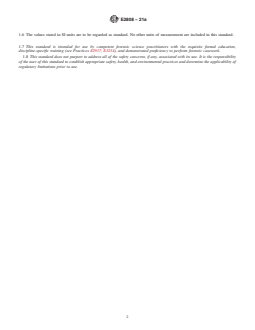 1.2 This guide deals primarily with color measurements within the visible spectral range but will also include some details concerning measurements in the UV and NIR spectral ranges. The particular method(s) employed by each analyst depends upon available equipment, examiner training (Practices E2917, E3234), sample suitability, and sample size.