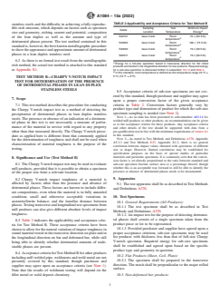 • Test Method B: Charpy V-notch impact test, provides acceptance criteria based on impact toughness values.