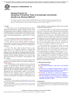 - Analytical Procedure: The standard describes analytical procedures for evaluating aquifer properties based on drawdown data from pumping tests in anisotropic unconfined aquifers. The practice covers both type-curve and semilogarithmic analysis methods.