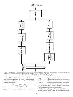 ASTM D7938-21 is a standard published by ASTM International. Its full title is "Standard Practice for Sampling of C-14 in Gaseous Effluents". This standard covers: SIGNIFICANCE AND USE 5.1 This practice was developed4 for the purpose of sampling gaseous effluent streams from a facility that releases 14C in either organic or inorganic forms. 5.1.1 For many years 14C was not included in gaseous and liquid effluent measurements used for effluent dose calculations at nuclear power facilities. U.S. NRC Regulatory Guide 1.21 now requires 14C analysis (either estimated by calculation or actual measurement) and its impact on annual dose in the environs of nuclear plants be evaluated. Based on the revisions to the Regulatory Guide and NRC guidance to licensees, 14C activity will need to be reported and evaluated for dose contribution based on the activity concentration and chemical form of the 14C in the release. 5.2 While 14C releases may be estimated, the measurement of actual 14C emissions provides a more reliable and accurate means of reporting emissions. The chemical form of 14C that yields the greatest dose significance due to uptake by living organisms is the inorganic form. Thus the distribution of 14C chemical forms in plant effluents is important in assessing the overall dose impact. 5.3 Use of this sampling practice has identified that for pressurized water reactors (PWRs) >90 % of all 14C released may be in the organic form during operation, and for boiling water reactors (BWRs) 14C released may be in the organic form during operation. 5.3.1 Some power plants have catalytic hydrogen recombiners in the waste gas processing system. These can also oxidize organic carbon to CO2, increasing the percentage of 14CO2 in the effluent release. 5.3.2 During refueling outages, oxidizing conditions exist in the reactor cavity due to air saturation and radiolytic reactions by the nuclear fuel. The combination of these two effects has been shown to increase the 14CO2 content of the sampled atmosphere inside the containment building. 5.4 The sampling methodology described in this practice is not capable of discriminating between different org... SCOPE 1.1 The intended use of this practice is for sampling of gasses containing 14C in inorganic, organic or particulate forms. This sampling practice captures the 14C in a media that can be submitted to a laboratory for analysis, typically by liquid scintillation counting (LSC) 1.2 This practice does not include the needed steps for the liberation of 14C from the media on which it was adsorbed or those for the preparation for LSC sample preparation in the laboratory prior to liquid scintillation analysis. This practice does not include the methodology used to analyze the prepared samples by LSC. 1.3 The overall 14C analytical detection capability is impacted by a number of factors including the volume sampled, the method used to desorb the 14C from the media, and the analytical method used the measure 14C from the media. This practice only directly addresses the volume of the gas stream from which any present 14C would be adsorbed. 1.4 The values stated in pCi units are to be regarded as standard given the reporting requirements of the U.S. NRC Regulatory Guide 1.21. The Bq values given in parenthesis are mathematical conversions to SI units that are provided for information only and are not considered standard. Other values stated in SI units are to be regarded as standard. 1.5 This standard does not purport to address all of the safety concerns, if any, associated with its use. It is the responsibility of the user of this standard to establish appropriate safety, health, and environmental practices and determine the applicability of regulatory limitations prior to use. 1.6 This international standard was developed in accordance with internationally recognized principles on standardization established in the Decision on Principles for the Development of International Standards, Guides and Recommendations issued by the World Trade Organization Technical Barriers to Trade (TBT) Committee.