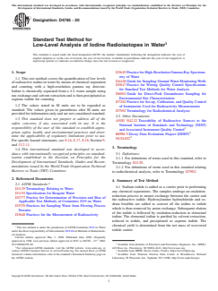 ASTM D4785-20 - Standard Test Method for Low-Level Analysis of Iodine Radioisotopes in Water