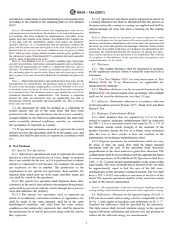 specimens (8.1); thickness (8.2); adhesion (8.3); absence of