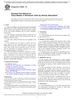 ASTM D5056-22 - Standard Test Method for Trace Metals in Petroleum Coke by Atomic Absorption