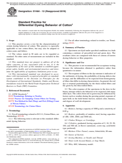 1.1 This practice covers a test for the characterization of certain dyeing behavior of cotton. This practice is especially applicable to raw cotton fibers, but may also be adapted to cotton yarns and fabrics.