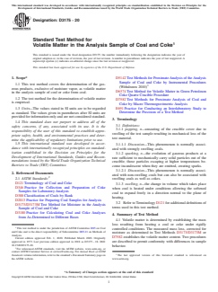 Keywords: ASTM D3175-20, volatile matter, coal analysis, coke testing, proximate analysis, coal classification, furnace method, moisture correction, laboratory precision, energy industry standards.