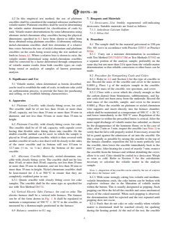of Test Method D3175 with the additional requirement that temperatures shall be measured with a Type K or N thermocouple with