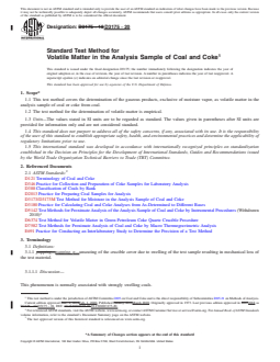 REDLINE ASTM D3175-20 - Standard Test Method for Volatile Matter in the Analysis Sample of Coal and Coke