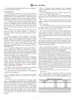 7.6 After the test, the blankets shall be given an inspection 8.5.1.1 A voltmeter used in conjunction with a calibrated