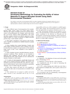 ASTM D6329-98(2023) - Standard Guide for Developing Methodology for Evaluating the Ability of Indoor Materials to Support Microbial Growth Using Static Environmental Chambers