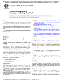 ASTM D802-02(2022) - Standard Test Methods for Sampling and Testing Pine Oils
