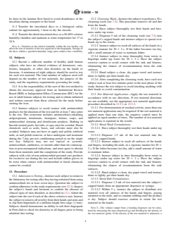 SIGNIFICANCE AND USE 5.1 Many marketed hand antiseptics make claims of "long-lasting protection” or “extended kill” (for example 6 hours), which are typically based on results of testing as described in Test Method E1882 or Guide E2752, or both. At this time there are no standard methods for evaluating a hand antiseptic formulation for its ability to kill microorganisms on hands when a “dry” contamination event occurs at some time after product use. This test method provides a method to substantiate residual kill claims for hand antiseptics. SCOPE 1.1 This test method is designed to determine the residual killing activity of skin antiseptics against transient microbial skin flora on the hands .2 It may be used to evaluate products that are used with the aid of water and rinsed off and those that are used without the aid of water and not rinsed off. 1.2 Performance of this procedure requires the knowledge of regulations pertaining to the protection of human subjects (see 21 CFR Parts 50 and 56). 1.3 This test method should be performed by persons with training in microbiology, in facilities designed and equipped for work with potentially infectious agents at biosafety level 2. 1.4 Units—The values stated in SI units are to be regarded as standard. No other units of measurement are included in this standard. 1.5 This standard does not purport to address all of the safety concerns, if any, associated with its use. It is the responsibility of the user of this standard to establish appropriate safety and health practices and determine the applicability of regulatory limitations prior to use. For more specific precautionary statements see 8.1.
