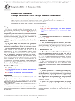 ASTM D3464-96(2023) - Standard Test Method for Average Velocity in a Duct Using a Thermal Anemometer