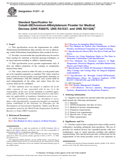 ASTM F1377-21 - Standard Specification for Cobalt-28Chromium-6Molybdenum Powder for Medical Devices (UNS R30075, UNS R31537, and UNS R31538)