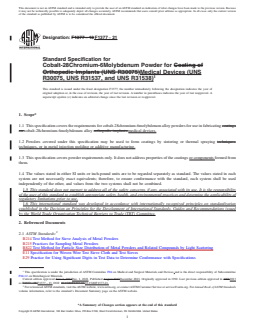 REDLINE ASTM F1377-21 - Standard Specification for Cobalt-28Chromium-6Molybdenum Powder for Medical Devices (UNS R30075, UNS R31537, and UNS R31538)