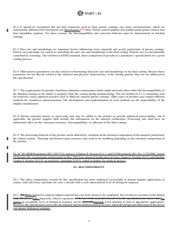 ASTM F1377-21 is a technical specification published by ASTM International. Its full title is "Standard Specification for Cobalt-28Chromium-6Molybdenum Powder for Medical Devices (UNS R30075, UNS R31537, and UNS R31538)". This standard covers: ABSTRACT This specification covers the requirements for cobalt-28chromium-6molybdenum alloy powders for coating of orthopedic implants. This specification covers powder requirements only and does not address coating properties. Materials may be manufactured by rotating electrode process, inert gas atomization, or other methods that meet the powder requirements of this specification. The powder shall conform to chemical composition, sieve analysis, and cleanliness requirements of this specification. SCOPE 1.1 This specification covers the requirements for cobalt-28chromium-6molybdenum alloy powders for use in fabricating cobalt-28chromium-6molybdenum alloy medical devices. 1.2 Powders covered under this specification may be used to form coatings by sintering or thermal spraying techniques, or in metal injection molding or additive manufacturing. 1.3 This specification covers powder requirements only. It does not address properties of the coatings or components formed from them. 1.4 The values stated in either SI units or inch-pound units are to be regarded separately as standard. The values stated in each system are not necessarily exact equivalents; therefore, to ensure conformance with the standard, each system shall be used independently of the other, and values from the two systems shall not be combined. 1.5 This standard does not purport to address all of the safety concerns, if any, associated with its use. It is the responsibility of the user of this standard to establish appropriate safety, health, and environmental practices and determine the applicability of regulatory limitations prior to use. 1.6 This international standard was developed in accordance with internationally recognized principles on standardization established in the Decision on Principles for the Development of International Standards, Guides and Recommendations issued by the World Trade Organization Technical Barriers to Trade (TBT) Committee.