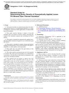 ASTM C1574-04(2018) - Standard Guide for Determining Blown Density of Pneumatically Applied Loose-Fill Mineral Fiber Thermal Insulation
