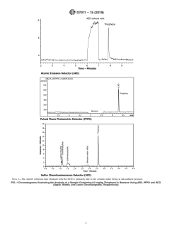 SIGNIFICANCE AND USE 4.1 Accurate gas chromatographic determination of trace levels of thiophene in benzene involves special analytical problems because of the difficulties of trace level analysis. These problems arise from the low concentration levels that need to be measured, the type of column and detector needed for analysis, and the potential interference from the benzene matrix. 4.2 This test method was found applicable for determining thiophene in refined benzene conforming to the specifications described in Specifications D2359, D4734, and D5871 and may be applicable toward other grades of benzene if the user has taken the necessary precautions as described in the text. 4.3 This test method was developed as an alternative technique to Test Method D4735. SCOPE 1.1 This test method covers the determination of thiophene in refined benzene using gas chromatography and sulfur selective detection. The test method is applicable to the determination of thiophene at levels of 0.02 to 2.18 mg thiophene per kg in benzene (mg/kg) on the AED, 0.03 to 1.87 mg/kg on the PFPD, and 0.03 to 2.11 mg/kg on the SCD. The range of the test method may be extended by modifying the sample injection volume, split ratios, calibration range, or sample dilution with thiophene-free solvent. 1.2 In determining the conformance of the test results using this method to applicable specifications, results shall be rounded off in accordance with the rounding-off method of Practice E29. 1.3 The values stated in SI units are to be regarded as standard. No other units of measurement are included in this standard. 1.4 This standard does not purport to address all of the safety concerns, if any, associated with its use. It is the responsibility of the user of this standard to establish appropriate safety, health, and environmental practices and determine the applicability of regulatory limitations prior to use. For specific hazard statements, see Section 7. 1.5 This international standard was developed in accordance with internationally recognized principles on standardization established in the Decision on Principles for the Development of International Standards, Guides and Recommendations issued by the World Trade Organization Technical Barriers to Trade (TBT) Committee.