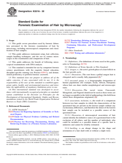 Keywords: forensic hair examination, ASTM E3316-22, microscopy, forensic standards, DNA analysis, evidence handling, hair comparison, forensic science, crime scene investigation, laboratory procedures.