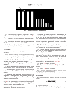 ASTM E1213-14(2022) is a standard published by ASTM International. Its full title is "Standard Practice for Minimum Resolvable Temperature Difference for Thermal Imaging Systems". This standard covers: SIGNIFICANCE AND USE 5.1 This practice relates to a thermal imaging system's effectiveness for discerning details in a scene. 5.2 MRTD values provide estimates of resolution capability and may be used to compare one system with another. (Lower MRTD values indicate better resolution.) 5.3 Due to the partially subjective nature of the procedure, repeatability and reproducibility are apt to be poor and MRTD differences less than 0.2 °C are considered to be insignificant. Note 1: Values obtained under idealized laboratory conditions may or may not correlate directly with service performance. SCOPE 1.1 This practice covers the determination of the minimum resolvable temperature difference (MRTD) capability of the compound observer-thermal imaging system as a function of spatial frequency. 1.2 The values stated in SI units are to be regarded as standard. No other units of measurement are included in this standard. 1.3 This standard does not purport to address all of the safety concerns, if any, associated with its use. It is the responsibility of the user of this standard to establish appropriate safety, health, and environmental practices and determine the applicability of regulatory limitations prior to use. 1.4 This international standard was developed in accordance with internationally recognized principles on standardization established in the Decision on Principles for the Development of International Standards, Guides and Recommendations issued by the World Trade Organization Technical Barriers to Trade (TBT) Committee.