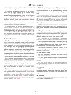 ASTM F3010-18(2024) is a standard published by ASTM International. Its full title is "Standard Practice for Two-Component Resin Based Membrane-Forming Moisture Mitigation Systems for Use Under Resilient Floor Coverings". This standard covers: SIGNIFICANCE AND USE 4.1 Moisture permeating from concrete substrates can detrimentally affect the performance of resilient floor covering systems. All resilient flooring and adhesive manufacturers have a maximum acceptable level of moisture in which their products can perform satisfactorily. If pre-installation moisture tests indicate that the moisture level is unacceptable for the specified floor covering to be installed, one option is to apply a topical treatment to the concrete substrate surface to mitigate the moisture condition. Experience has shown that certain types of membrane-forming moisture mitigation systems have more desirable properties and successful performance than others. Requirements for membrane-forming moisture mitigation systems to be used, and other related details, are generally included as part of the project plans, or specification details, and may vary from the minimum recommendations set forth in this practice. 4.2 This practice is intended for use after it has been determined that a floor moisture condition exceeds the resilient floor covering or adhesive manufacturer’s requirements, or both, as tested according to Test Methods F1869, F2170, and F2420. 4.3 Membrane-forming moisture mitigation systems are not intended for use over gypsum-based substrates or other moisture sensitive substrates. SCOPE 1.1 This practice covers the properties, application, and performance of a two-component resin based membrane-forming moisture mitigation system to high moisture concrete substrates prior to the installation of resilient flooring. 1.2 This practice includes recommendations for the preparation of the concrete surface to receive a two-component resin based membrane-forming moisture mitigation system. 1.3 This practice does not supersede written instructions of the two-component resin based membrane-forming moisture mitigation system manufacturer, the resilient flooring manufacturer, underlayment manufacturer, the adhesive manufacturer, or other components of the finish flooring system, or combinations thereof. Users of this practice shall review manufacturer’s technical data sheets and installation instructions for compatibility of system components. 1.4 The following membrane-forming or non membrane-forming moisture mitigation systems are not included in the scope of this practice: 1.4.1 Moisture mitigation systems that chemically react with any constituent of the concrete to form a gel or crystalline substance within the concrete. 1.4.2 Penetrating, water- or solvent-based compounds that do not form a continuous membrane on the concrete surface. 1.4.3 Water-based membrane-forming moisture mitigation systems are not included in the scope of this document. 1.5 The values stated in inch-pound units are to be regarded as standard. The values given in parentheses are mathematical conversions to SI units that are provided for information only and are not considered standard. 1.6 This standard does not purport to address all of the safety concerns, if any, associated with its use. It is the responsibility of the user of this standard to establish appropriate safety, health, and environmental practices and determine the applicability of regulatory limitations prior to use. 1.7 This international standard was developed in accordance with internationally recognized principles on standardization established in the Decision on Principles for the Development of International Standards, Guides and Recommendations issued by the World Trade Organization Technical Barriers to Trade (TBT) Committee.