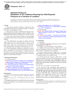 ASTM G222-21 - Standard Practice for Estimation of UV Irradiance Received by Field-Exposed Products as a Function of Location