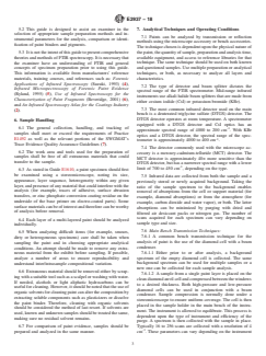 5.3 It is not the intent of this guide to present comprehensive theories and methods of FTIR spectroscopy. It is necessary that the examiner have an understanding of FTIR and general concepts of specimen preparation prior to using this guide. This information is available from manufacturers’ reference materials, training courses, and references such as: Forensic Applications of Infrared Spectroscopy (Suzuki, 1993) (4), Infrared Microspectroscopy of Forensic Paint Evidence (Ryland, 1995) (5), Use of Infrared Spectroscopy for the Characterization of Paint Fragments (Beveridge, 2001) (6), and An Infrared Spectroscopy Atlas for the Coatings Industry (2).