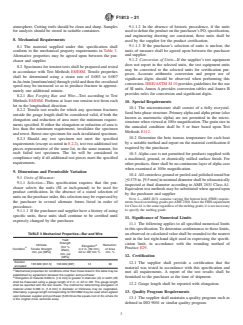 - Testing Methods: References standardized ASTM and ISO test methods for tension testing, significant digits in test data, grain size determination, chemical analysis, and ultrasonic inspection.