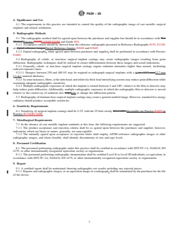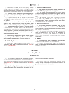 - Radiographic Testing Procedures: The practice specifies step-by-step methods for conducting radiographic examinations on cast metallic implants and weldments, referencing established ASTM guides and practices to ensure consistency.