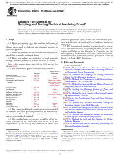 This ASTM standard outlines fundamental test methods that support specification, design, and quality control of insulating boards, emphasizing properties like apparent density, moisture content, dielectric strength, and compatibility with dielectric liquids.