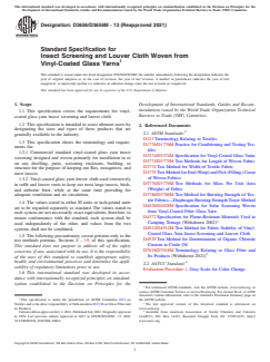 ASTM D3656/D3656M-13(2021) - Standard Specification for Insect Screening and Louver Cloth Woven from<brk/>Vinyl-Coated Glass Yarns