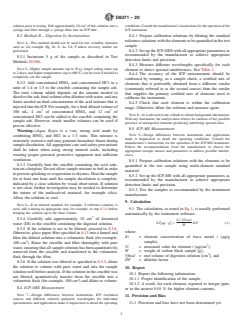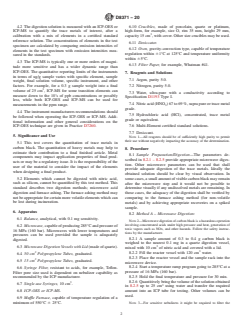 5.2 Elements which cannot be digested with nitric acid, such as silicon, cannot be quantified by this test method. This standard describes two digestion methods; microwave acid digestion and furnace ashing. The furnace ashing method may not be appropriate for certain more volatile elements which can be lost during incineration.