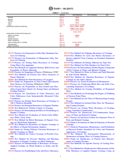 ASTM D3451-06(2017) is a guide published by ASTM International. Its full title is "Standard Guide for Testing Coating Powders and Powder Coatings". This standard covers: SIGNIFICANCE AND USE 4.1 This guide provides a useful summary to the selection and use of procedures for testing coating powders and powder coatings. It is applicable to both thermoplastic and thermoset coatings, unless indicated otherwise. By design this guide does not purport to address test methods or procedures developed specifically for the functional powder coating market, those coating powders for application to pipe or reinforced steel bars (rebar). Information on current test procedures for pipe and reinforced steel bar coating powders and powder coatings can be obtained through their respective ASTM Subcommittees, A01.05 and D01.48. 4.2 Selection of the methods to be followed and the interpretation of results must be governed by experience and the requirements in each individual case, together with agreement between the purchaser and seller. It should be noted that many of the methods used for characterizing a coating powder, such as gel time (Section 16) and inclined flow (Section 17), are primarily meant for the relative comparison of two coating powders, rather than to give a test value that can be interpreted as good or bad. Interpretation of the test results will depend on the specific application in question and will also often depend on the chemistry of the coating powder used. SCOPE 1.1 This guide covers the selection and use of procedures for testing coating powders and powder coatings. The test methods included are listed in Table 1. Where more than one test method is listed for the same characteristic, no attempt is made to indicate superiority of one method over another. Selection of the methods to be followed must be governed by experience and the requirements in each individual case, together with agreement between the purchaser and the seller. 1.2 This guide also refers to methods developed specifically for the coating powder industry by the Powder Coating Institute, PCI, and the International Organization for Standards, ISO. 1.3 This guide describes the testing of coating powders as applied by electrostatic spray, fluidized bed, or any other applicable method. 1.4 The values stated in SI units are to be regarded as standard. No other units of measurement are included in this standard. 1.5 This standard does not purport to address all of the safety concerns, if any, associated with its use. It is the responsibility of the user of this standard to establish appropriate safety and health practices and determine the applicability of regulatory limitations prior to use. 1.6 This international standard was developed in accordance with internationally recognized principles on standardization established in the Decision on Principles for the Development of International Standards, Guides and Recommendations issued by the World Trade Organization Technical Barriers to Trade (TBT) Committee.