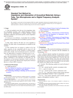 ASTM E1050-19 - Standard Test Method for Impedance and Absorption of Acoustical Materials Using a Tube, Two Microphones and a Digital Frequency Analysis System